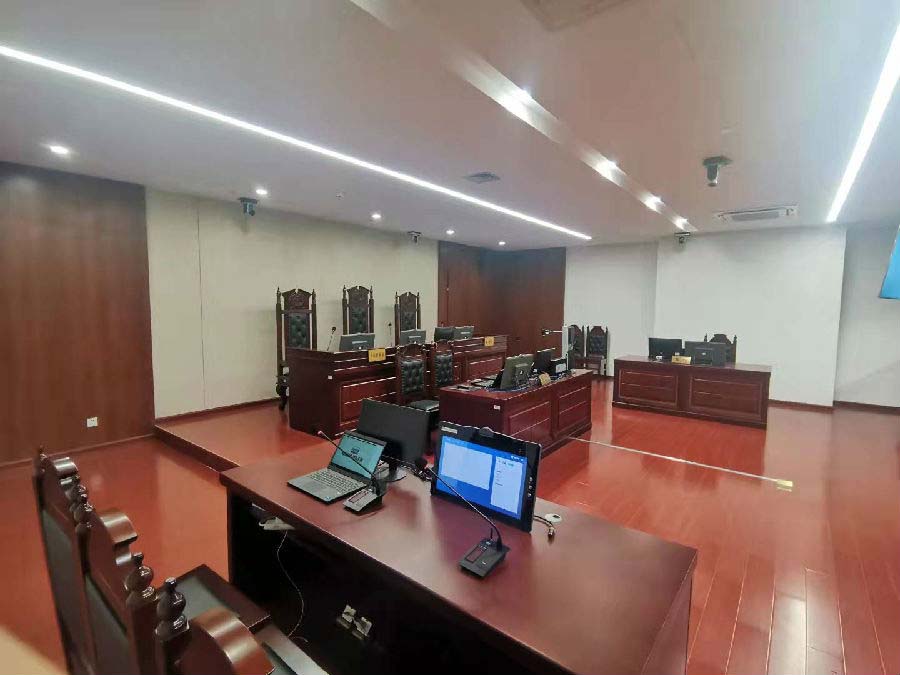 审理庭内的旁听人员通过庭内大屏幕显示设备;审理庭外的公众通过互联网系统,对公开审理的各类案件实现透明公开的了解和监督。