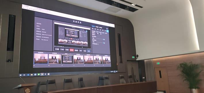 中国尊报告厅采用高度集成的一体化主机AS-UT,配合原来设备进行高清升级改造,项目具备视频拼接管理、音频管理、录制/点播/直播/回放/导播管理、中控设备管理、视频会议交互管理、可视化综合管理等功能。