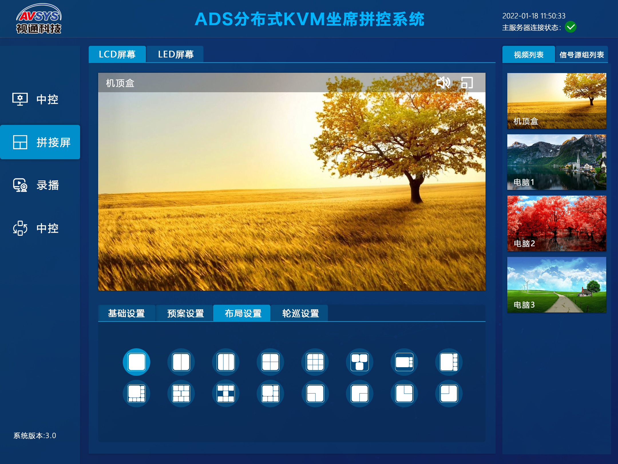 在生产指挥调度应用中,分布式坐席系统可以实现多个区域间信号互联互通,各会议室的信号可实时调取,机房中心对所有会场的信号可实时监控调度,实时控制各会议室内的设备。用户只需拿触控设备即可将分布在不同区域的信号源进行联动控制和实时调度,不管是信号源还是周边设备,一键轻松搞定。无压缩、无损耗、无延时传输使会议室从施工、管理、控制及售后上,降低了不必要的人力物力,管理上更加智能化,人性化。