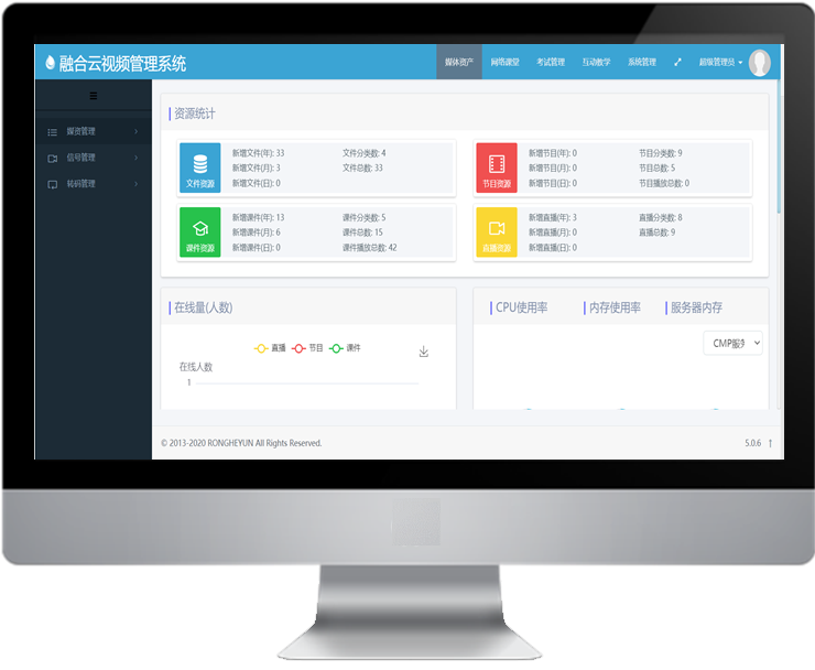 功能全面:直播、点播、评课、巡课、资料管理等。