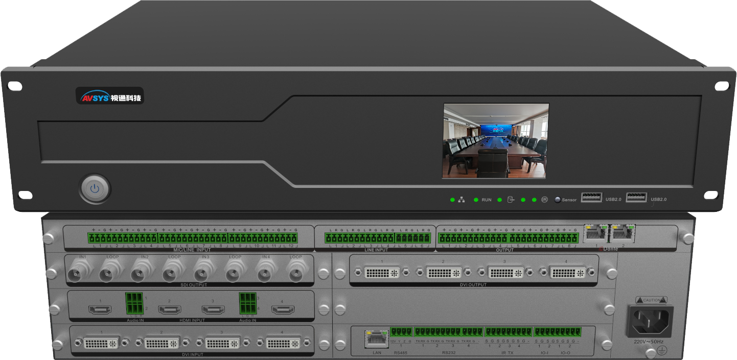AS-UT2音频视综合一体机具备六大功能: AVCRTM六剑合一,包含音频处理器A、视频无缝混矩V、可编程中控C、录播编解码R、视频会议终端T、多方视频会议MCU,通过可视化综合管理平台将六大功能融合。UT2以智能便捷操作为基础,用户体念为核心,提供B/S、C/S、GUI等多种可视化综合管理平台。采用ALL-IN-ONE的设计理念,运用热插拔模块化设计,具有安装简便,操作简单、维护容易等优点,面对多系统应用场景,通过可视化综合管理平台实现互联互通,集中管控,为用户提供一体化解决方案。 UT2主要面向视频会议室、指挥中心、指挥方舱、车载应急、便携指挥所、数字化手术室、科技法庭等行业打造高度集成的可视化解决方案。
